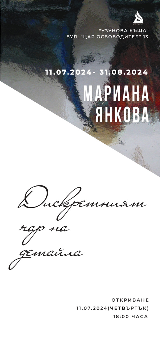 "Дискретният чар на детайла" е трета самостоятелна проява на сливенския визуален артист Мариана Янкова. Експозицията илюстрира настоящия резултат от продължаващите търсения на авторката в избраната още в началото на творческия й път посока, а именно – "извеждането" на абстрактни мотиви от обкръжаващата ни среда, акуратно наименовани от самата нея фото-фрагменти от повърхности, претърпели допълнителна обработка.