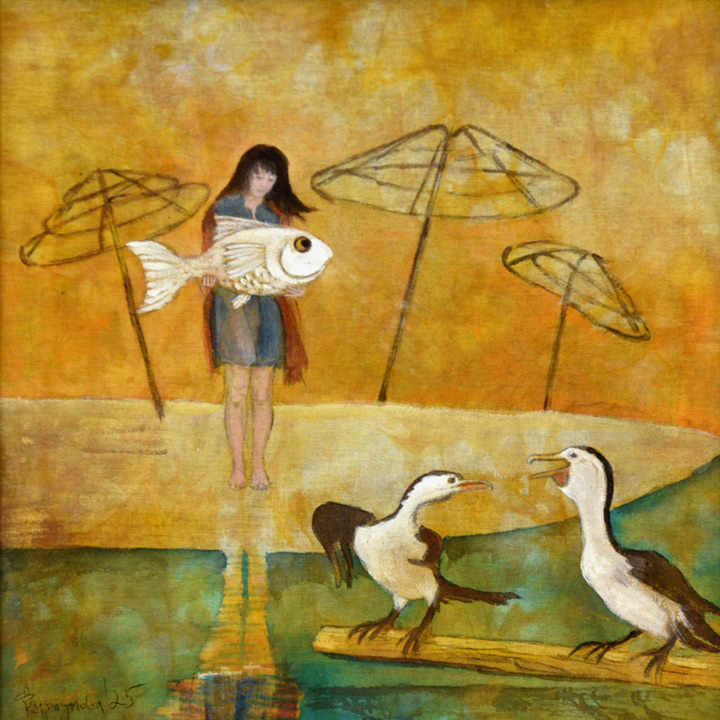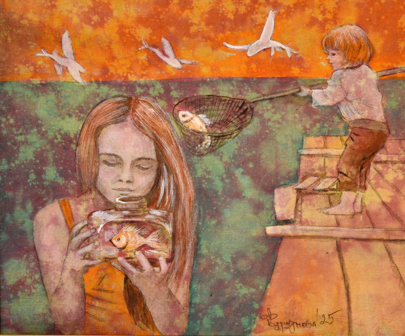 Техниката на картините е "батик с акрилни бои", предпочитана от Дора Куршумова, за която това е 69-а експозиция. "Това е моят начин да усетя море, когато температурите навън са под нулата или да мечтая за едно топло лято на брега", коментира художничката.