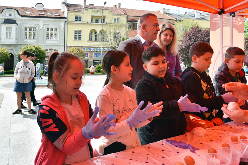 Десетки жители и гости на Сливен се включиха Навръх Великден в общоградското веселие. Вярна на традицията и тази година Община Сливен организира концерт, посветен на един от най-светлите християнски празници – Възкресение Христово. Слънчевото време привлече десетки посетители пред сградата на Общината, които се с поздравяваха с празника и наблюдаваха с интерес изпълненията на сливенския Ансамбъл за народни песни и танци.