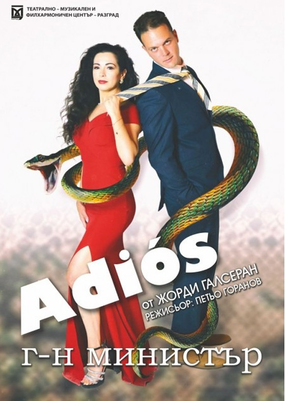 Висш политик подава оставка, след като е разкрита съмнителна схема - в замяна на услуга получава разкошен подарък. В отчаянието си решава да сложи край на живота си… но точно тогава на вратата му "почуква съдбата". В чий образ се появява тя и как преобръща всичко - ще разберете в спектакъла "Адиос, господин министър"!