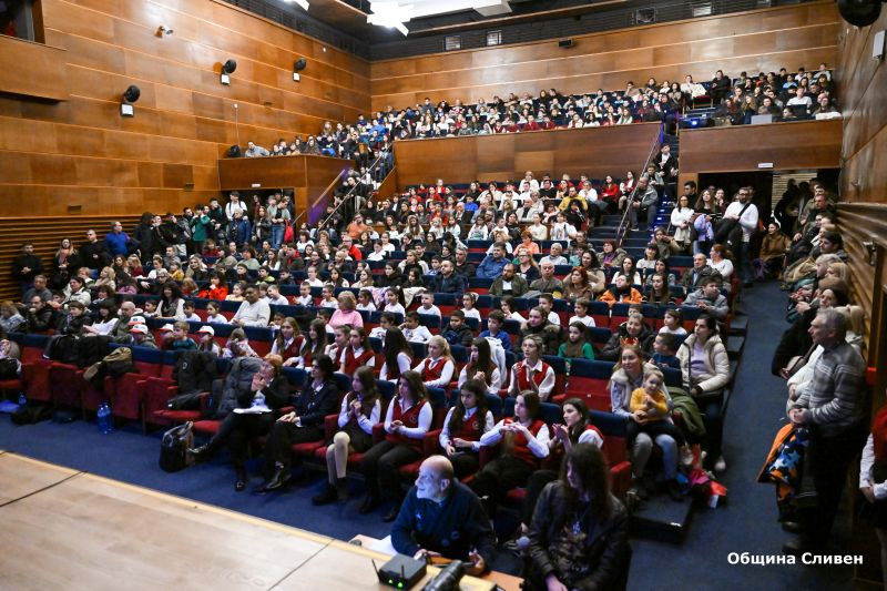 С илюстрации от живота на Васил Левски и снимки от народното преклонение пред паметта му започна музикално-поетичната вечер, посветена на 153-та годишнина от гибелта на великия българин. Зала "Сливен" събра ученици от Начално училище "Васил Левски” и Профилирана природо-математическа гимназия "Добри Чинтулов". Присъстваха председателят на Общинския съвет Димитър Митев, заместник -кметът Пепа Чиликова, директори на училища и детски градини, учители и др.